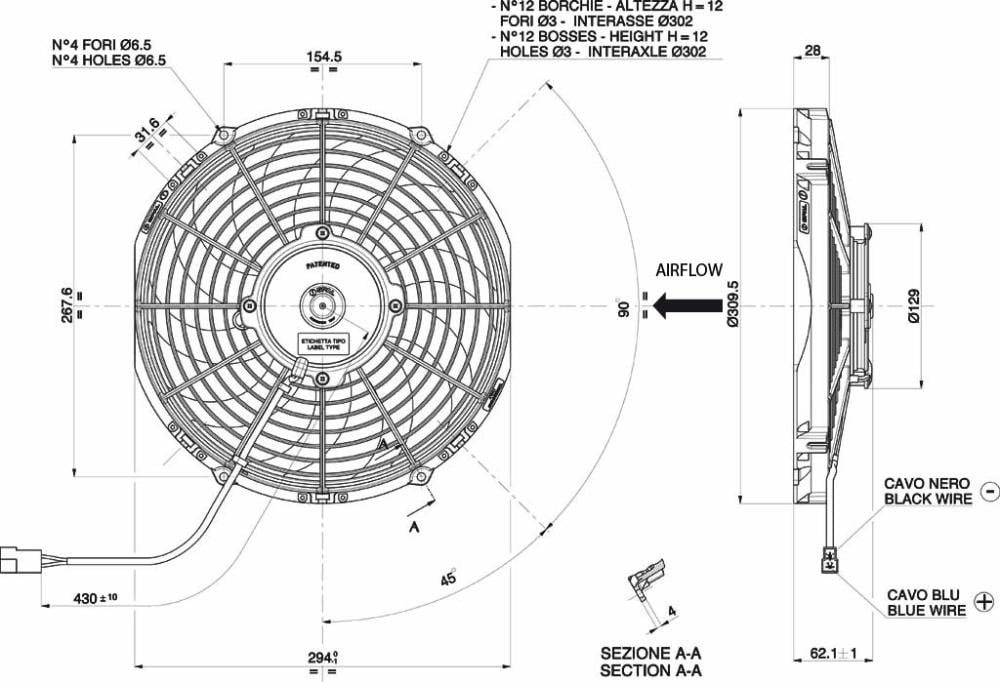 - مقاسات المروحة : فالصورة جميع ابعاد المروحة بوحدة mm ملي ميتر